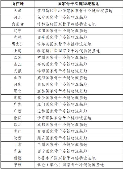 2022年国家骨干冷链物流基地建设名单